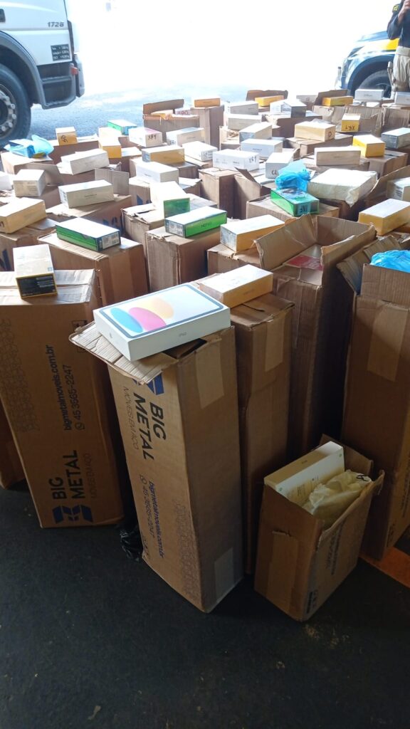 A Polícia Rodoviária Federal (PRF) realizou uma grande apreensão de eletrônicos estrangeiros sem documentação fiscal e prendeu um motorista na BR-153, no município de Ourinhos, na tarde desta terça-feira 15 de outubro de 2025.